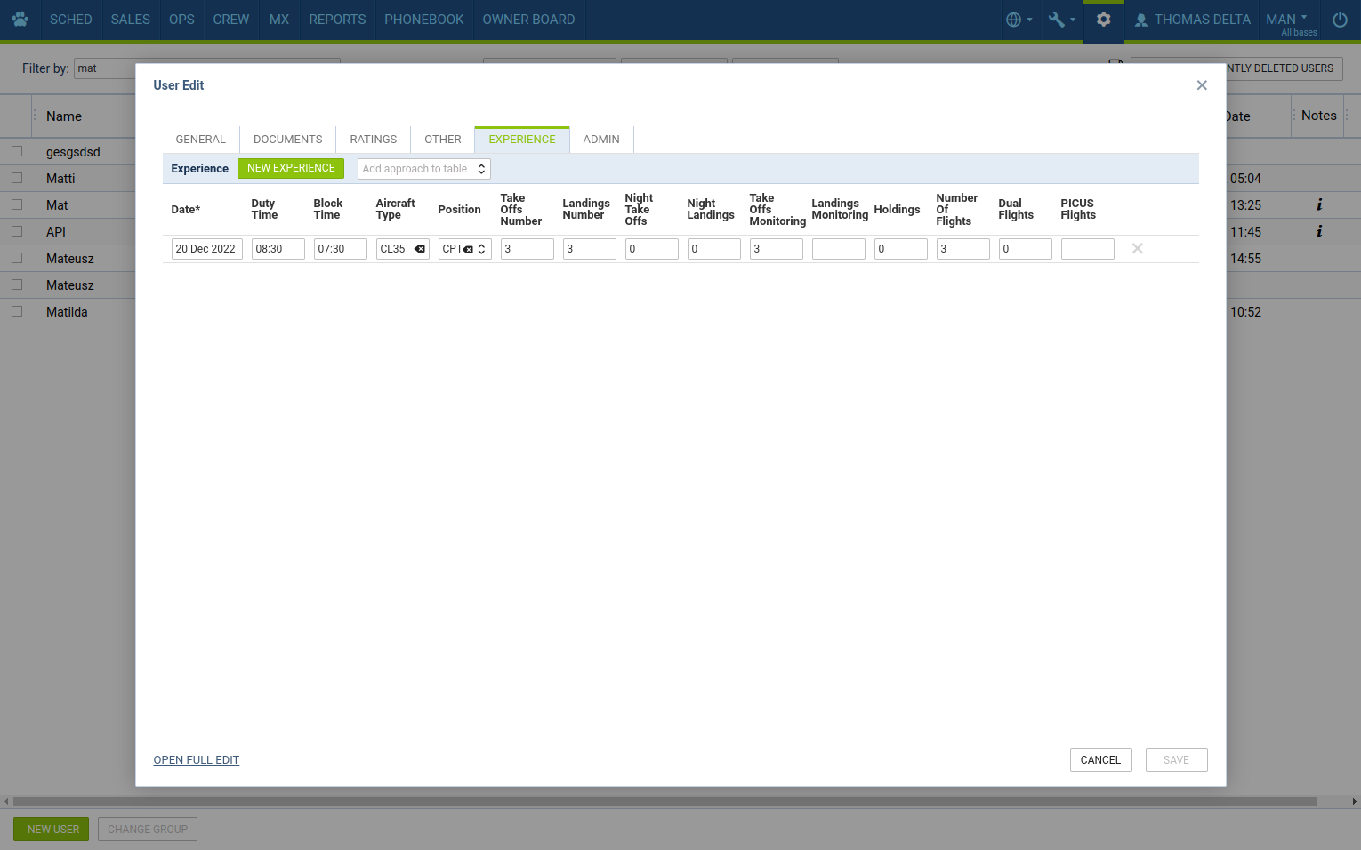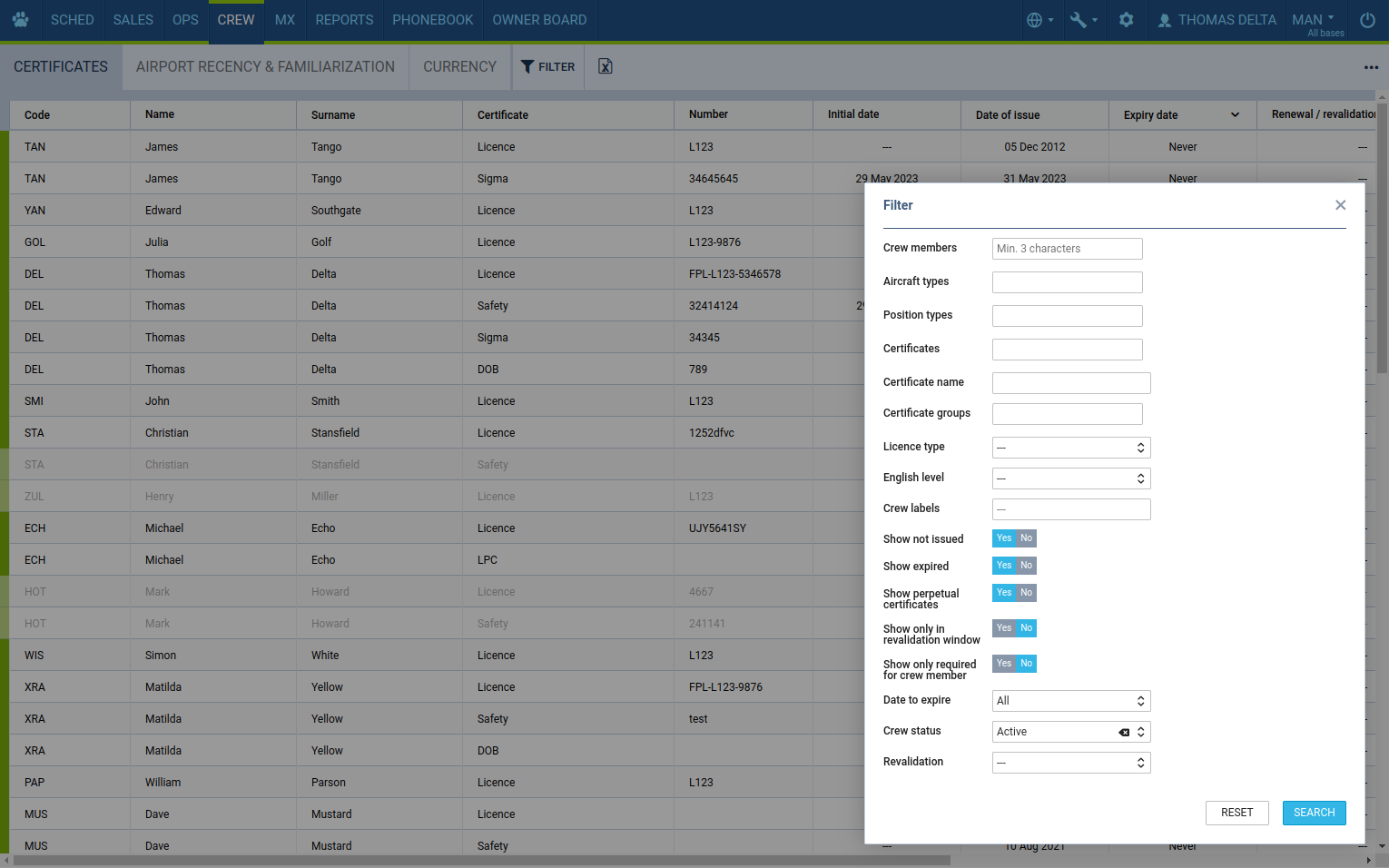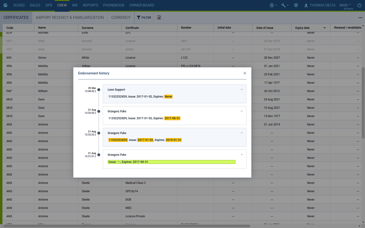 - using ‘Qualification’ section have a quick overview of the Crew Endorsements, Airport Recency, Online Familiarization & currency requirements