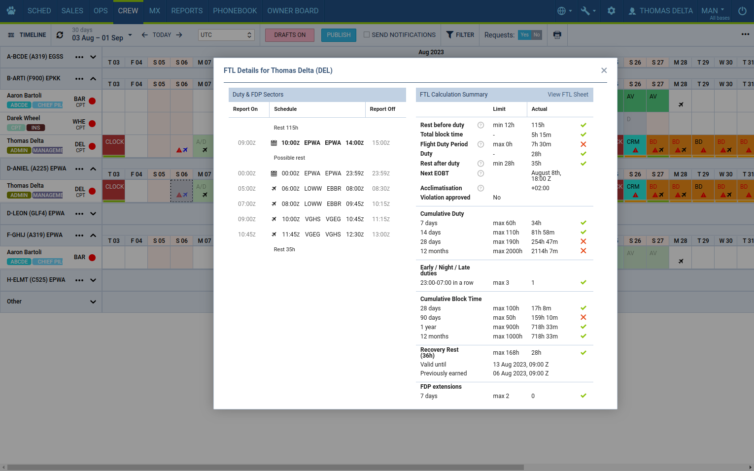 - see all the data you need for the planning of duties for the crew in ‘Crew Timeline’