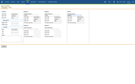 Sky of Solutions may serve as a central repository for your fleet maintenance data, including fleet documents and CAM information (TAH, TAC as well as APU hours).