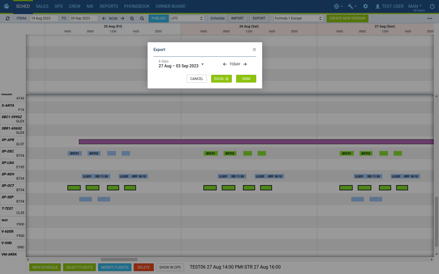 - Import / Export your schedule using either SSIM IATA format or Excel files