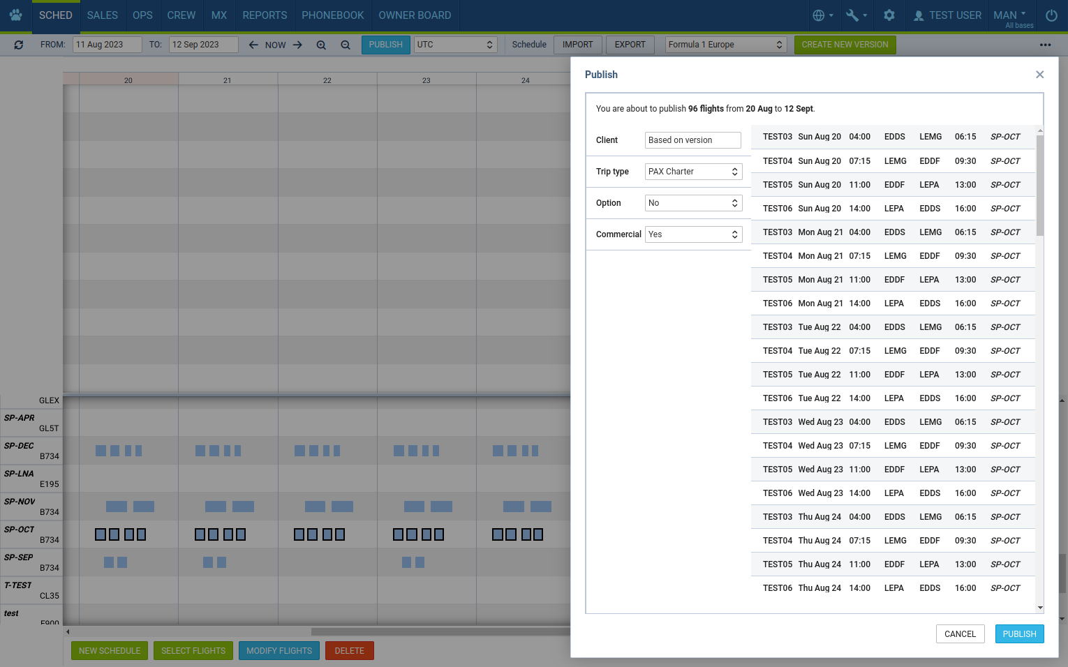 We have designed SCHED module with Airlines in mind.